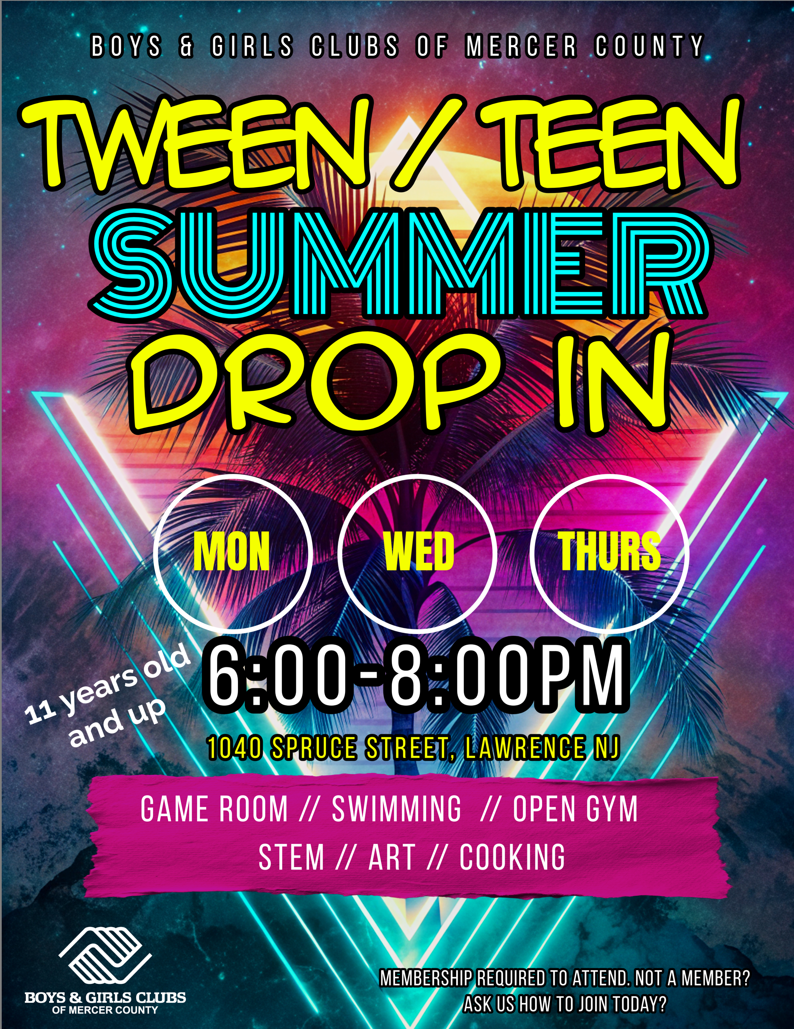 Calling all 5th- 8th graders! Join us for fun recreational and educational actvities at the Spruce Street Clubhouse. Our trained Youth Development Professionals lead activities for youth every Monday, Wednesday and Thursday evening for 6-8 pm this summer. Club Membership is required, but there is not need to enroll in the program- just drop-in. Activities varry, but include Game Room, STEM activities, art, open gym, cooking, and more...